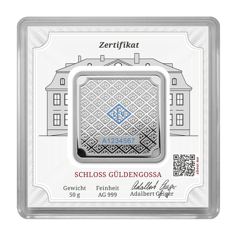 In addition to the proven pearl finish surface and the particularly grooved edge, the bar impresses with a beautifully structured back, a unique serial number and an invisible UV coating that fluoresces under so-called black light.