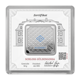 This 50 g silver bar is delivered in a security capsule with a certificate of authenticity. The capsule can only be opened by destroying it, which is why you should pay attention to the integrity of the capsule when purchasing it.