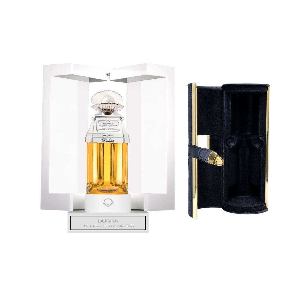 Dubai Bahar was the First Generation product inspired by the sea. Durra belongs to the Second Generation. In the ancient craft of pearl diving, an ancient occupation that has existed in the region for thousands of years, no other pearl like the Durra has ever been found. The silvery shell slowly opens to reveal the treasure hidden within. The treasure of the deep sea, untouched by human hands, the flawless white pearl. It is nature's most beautiful creation. The deep marine notes envelop you, fill you with the spirit of discovery and call to you. As you get closer, scents emerge that awaken memories. A strong, woody, oriental fragrance. The light presence of moist amber with leather, vanilla and vetiver. Durra is waiting to be discovered.