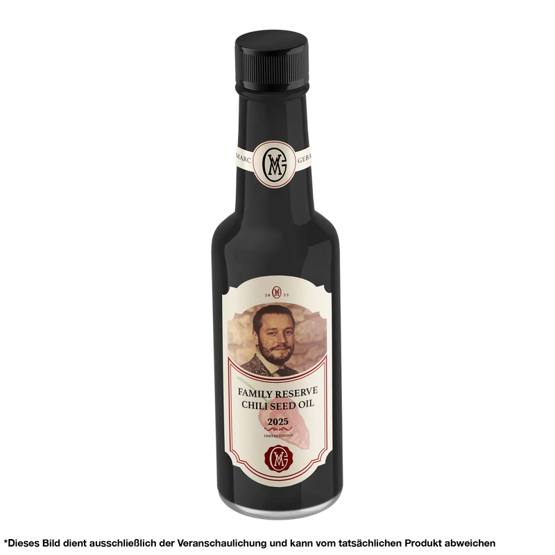 This limited edition Family Reserve is not for the faint of heart: Pure oil from the seeds of ripe chilies, deep red, aromatic, and of incomparable spiciness and depth. The purity of the essence ensures an exceptionally clear, fruity-spicy profile – ideal for refining steaks, pasta, vegetable dishes, or Asian cuisine.