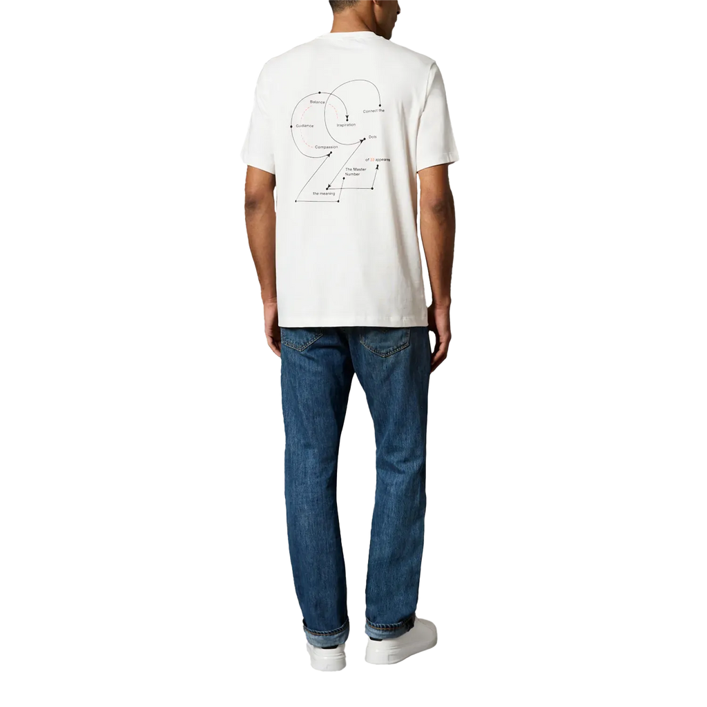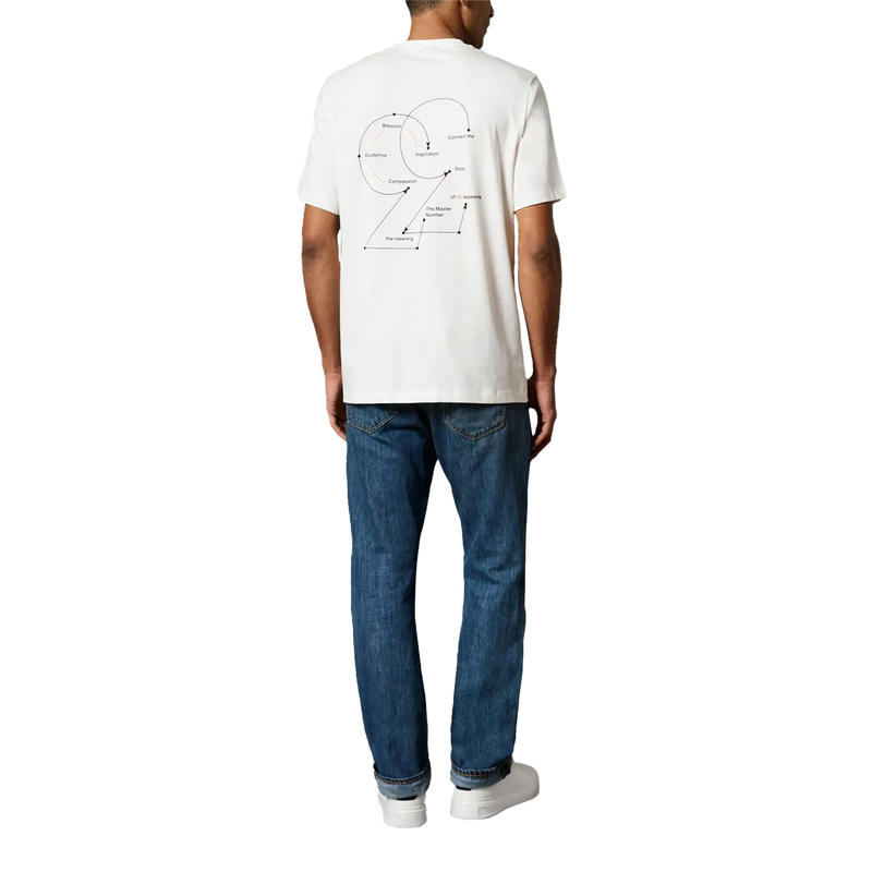 Meet the Master Number 33 T-shirt from the exclusive 33 collection. This off-white T-shirt, made from lightweight cotton, features the 33 logo on the chest and an impressive back print that captures the essence of the master number. The loose fit and modern design offer the highest level of comfort and style. Made in a limited edition, it stands for exceptional quality and style.