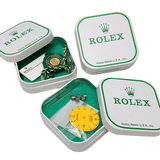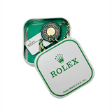Vintage Estate Original Rolex Box Aluminum Green and White Metal Watch Parts / Storage Box.