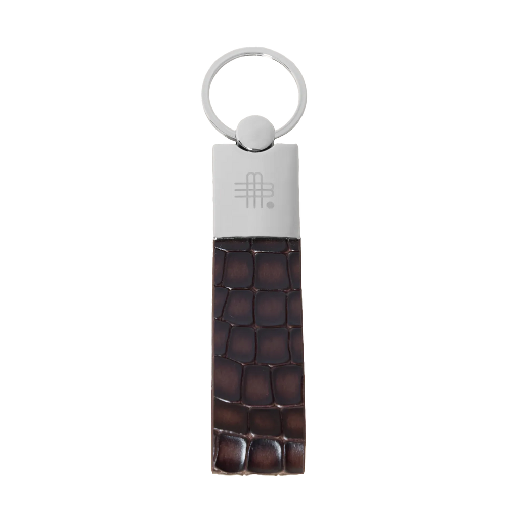 The brown, embossed leather in a crocodile look gives each piece a unique grain and structure. Handcrafted with the utmost care and attention to detail. Our subtle brand logo on the metal end perfectly rounds off the elegant design.