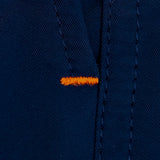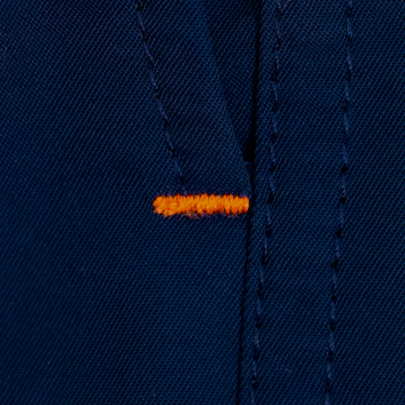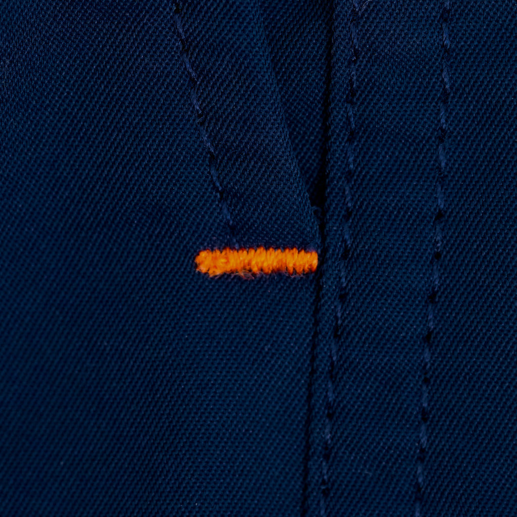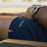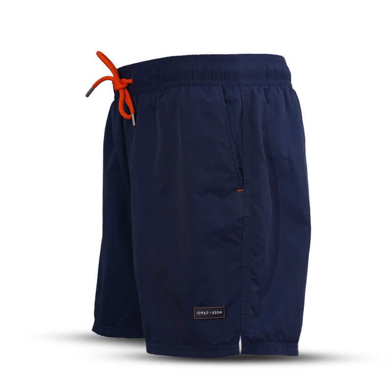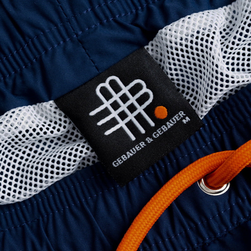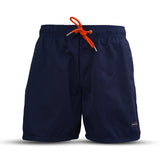 This smart classic short in ocean blue, is made for relaxation, with a comfortable elasticated waistband and an orange drawstring. They have two side pockets, as well as a back pocket with Velcro fastening. Logo embroidery at the back pocket and a unique rubber patch at the front.