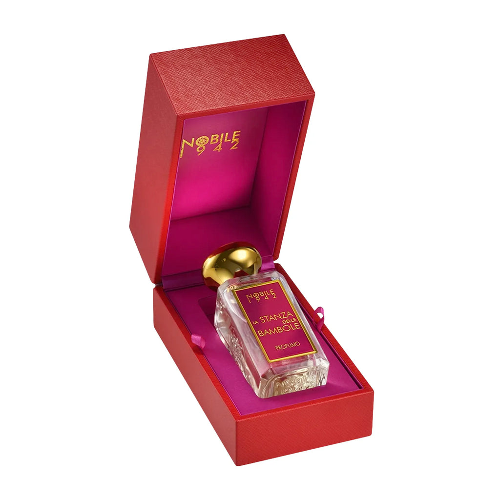En el fondo, vainilla cremosa, sándalo suave, haba tonka sensual y un delicado acorde de almizcle se funden en un aura suave, casi aterciopelada. La Stanza delle Bambole es una fragancia íntima, casi poética, como un abrazo silencioso entre el recuerdo, la imaginación infantil y el anhelo adulto.