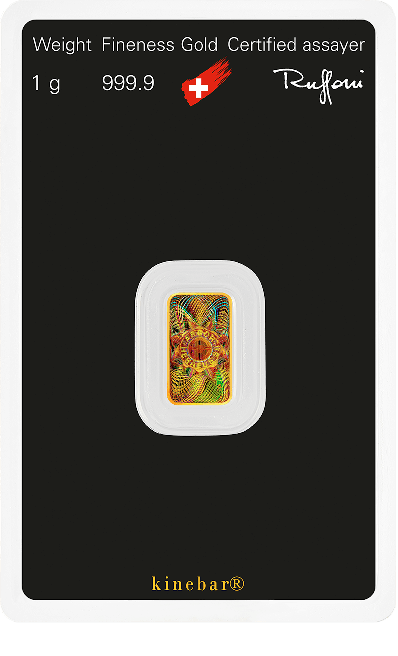 Das 1 Gramm Gold Kinebar AHSA ist ein exquisites Stück, geprägt mit höchster Präzision und Eleganz. Hergestellt aus reinem 99,99%igem Gold, trägt es die charakteristische Kinegram-Technologie, die eine hochsichere und einzigartige Prägung gewährleistet. Mit einem Gewicht von 1 Gramm verkörpert dieses Kinebar nicht nur Wert, sondern auch Raffinesse. Es ist ein Symbol für Qualität, Wertbeständigkeit und die Finesse, die nur Gold bieten kann. Ein wahrhaft bemerkenswertes Stück für Sammler und Anleger gleichermaßen.