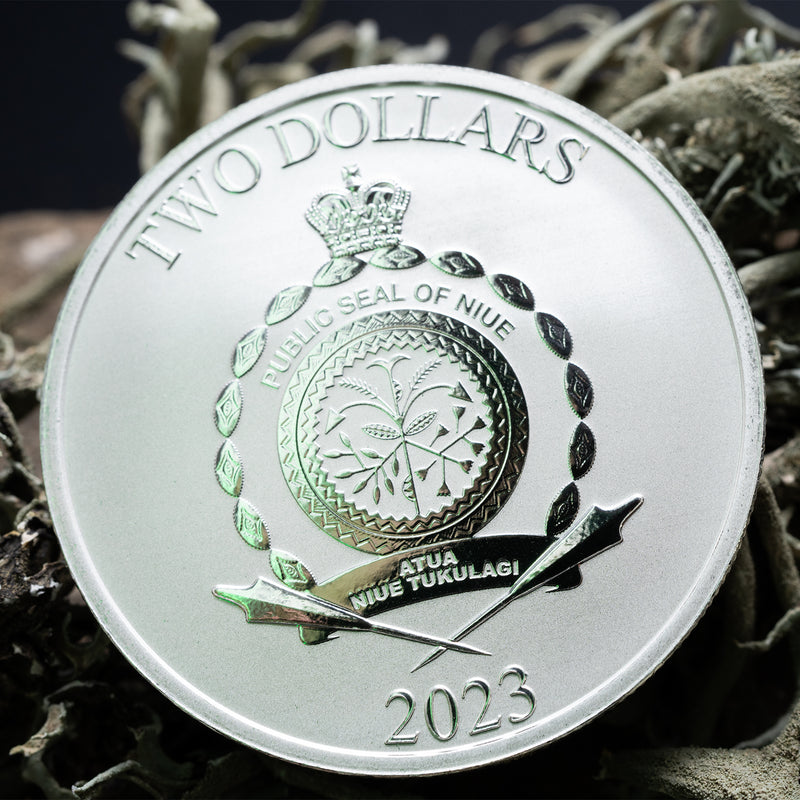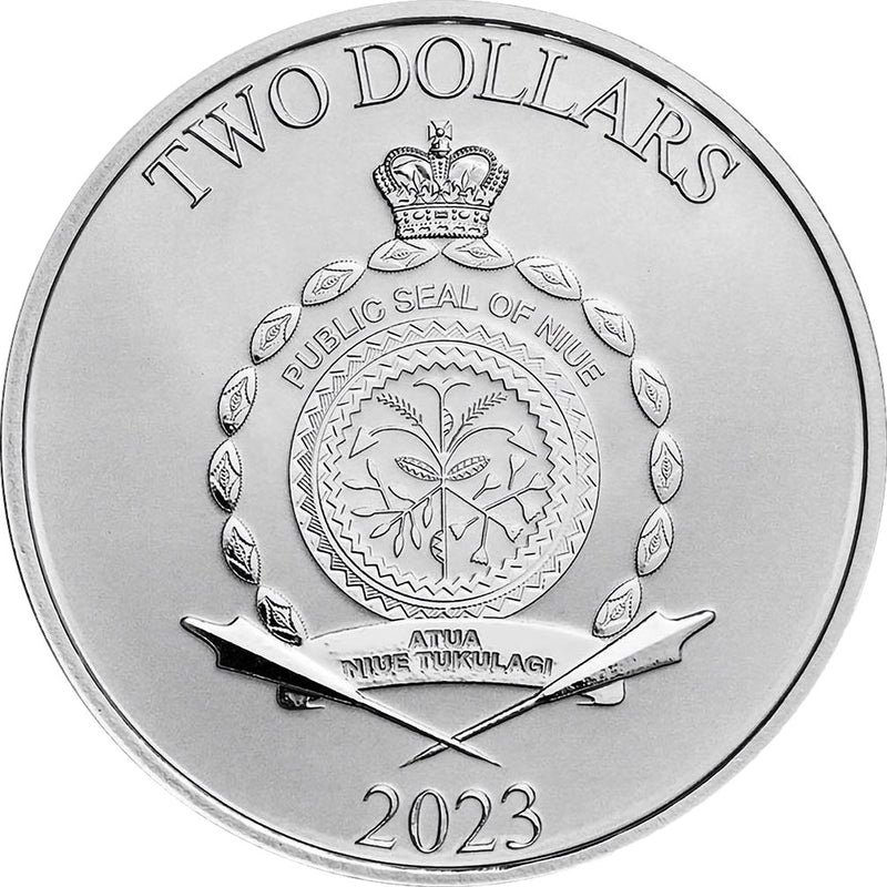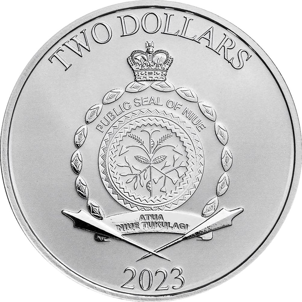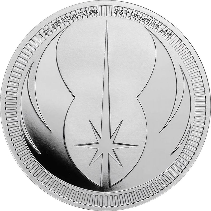 Auf der Vorderseite der Münze ist das offizielle Wappen des Jedi-Ordens zu sehen, zusammen mit dem Copyright von Lucasfilm Ltd., dem Gewicht und dem Feingehalt der Münze. Die Rückseite zeigt das offizielle Wappen von Niue sowie die Aufschriften "TWO DOLLARS" und "2023".