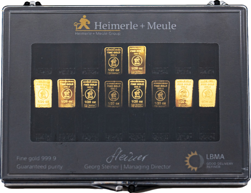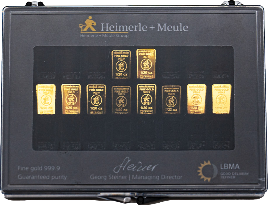 Heimerle und Meule 10 x 1/20 Unze Goldbarren Heimerle und Meule Sammlerbox
