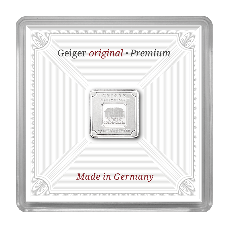 Die 1 g Silberbarren Geiger original sind eine absolute Produktneuheit auf dem Edelmetallmarkt. Sie heben sich deutlich in Design und Sicherheitsmerkmalen von den üblichen Edelmetallprodukten am Markt ab.