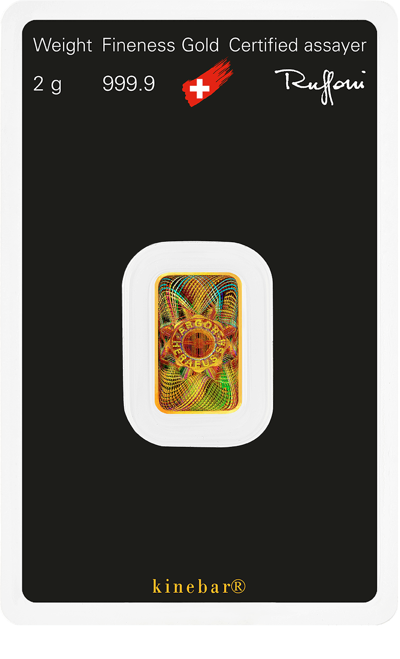 Das 2 Gramm Gold Kinebar AHSA ist eine exquisit geprägte Goldmünze, die höchste Qualität und Eleganz verkörpert. Hergestellt aus reinem Gold mit einem Feingehalt von 99,99%, bietet dieses Kinebar höchste Sicherheit und Einzigartigkeit durch die Kinegram-Technologie. Das präzise Design und die ausgezeichnete Prägung machen es zu einem beeindruckenden Stück für Sammler und Investoren gleichermaßen. Mit seinem edlen Gewicht von 2 Gramm ist dieses Kinebar ein Symbol für Wertigkeit, Raffinesse und eine solide Investition in die Welt des Goldes.
