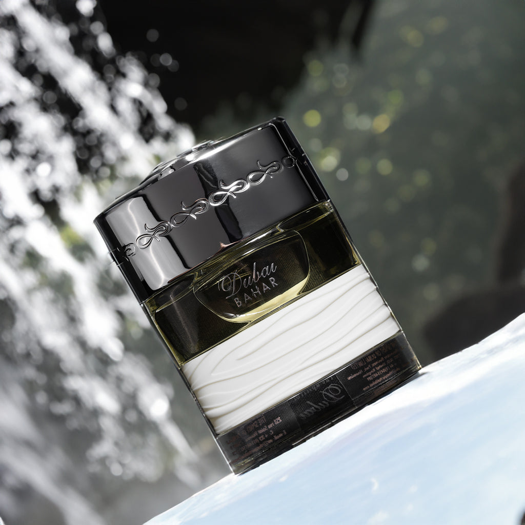 Dubai Bahar ist vom Meer und der Küste Dubais inspiriert. Die Wellen und weißen Sandstrände blicken auf die Inselformationen am Horizont. Die tiefen Noten von Vanille, Amber, Rose und Jasmin spiegeln die Tiefen der Meere wider, während die leichteren Noten von Limette, Zitrone, Meeres- und Wassernoten an die kühle Brise erinnern. Dieser aquatisch-holzige Duft weckt Staunen und eröffnet neue Möglichkeiten.
