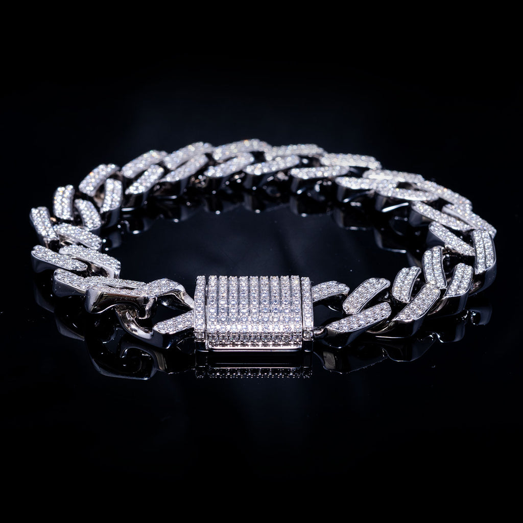 Mit seinen 474 handgefassten Einkristallen und einer Gesamtkaratmenge von etwa 10 Karat ist dieses Armband ein wahrer Blickfang. Es zieht die Aufmerksamkeit auf sich und wird zu einem Gesprächsthema bei jedem Anlass. Egal, ob Sie es alleine tragen oder mit anderen Armbändern kombinieren, das Cuban Bracelet wird Ihren Look auf eine ganz neue Ebene heben.