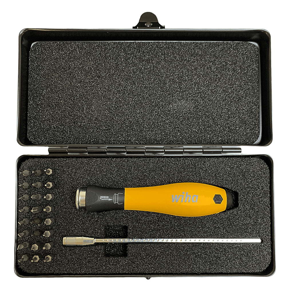 Steigert Ihre Effizienz: Kompaktes Präzisions-Schraubwerkzeug System 4 mit umfangreichem, wechselbarem Klingensortiment.