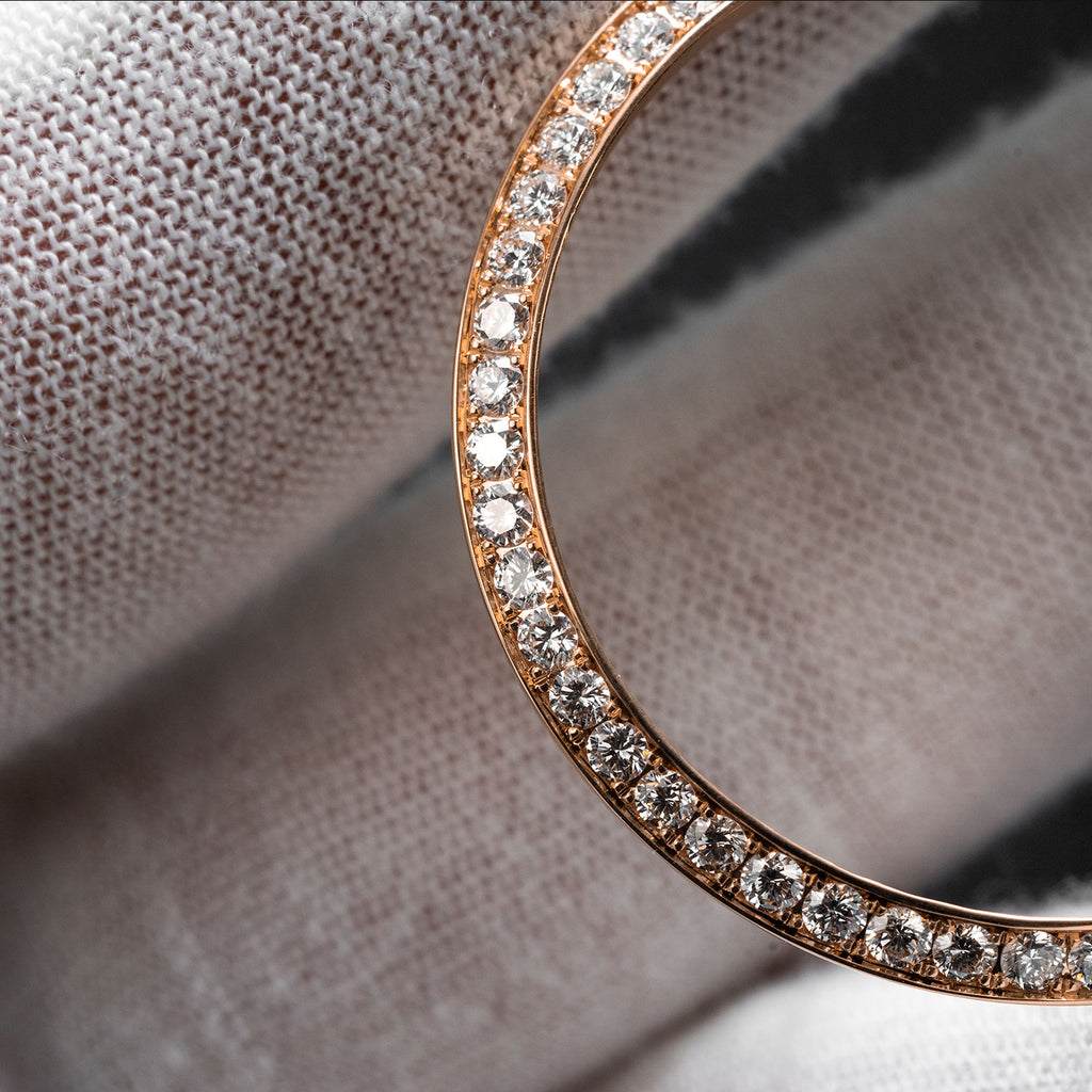 Die Verwendung von 750er Rosegold unterstreicht nicht nur den luxuriösen Charakter dieser Lünette, sondern gewährleistet auch eine langlebige und erstklassige Qualität. Die perfekte Passform für Referenzen, die mit der Nummer 12 beginnen, sorgt dafür, dass diese Lünette nahtlos mit Ihrer Rolex Datejust 36 verschmilzt.