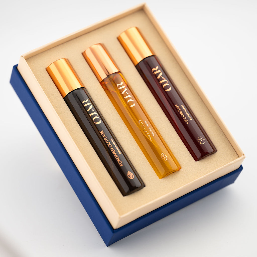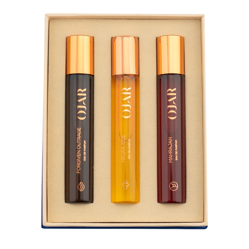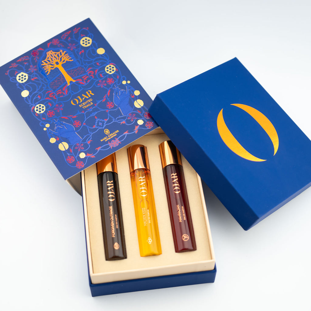 • Mahrajan:                                                                                                                                 Mahrajan ist ein exquisiter Duft, der die Frische von Kumquat und Pfingstrose mit aquatischen Noten in der Kopfnote verbindet. Im Herzen entfaltet sich ein florales Bouquet aus Mimose, Rose und Nelke, umhüllt von warmem Kaschmirholz. Die Basisnote wird durch die Süße von Türkischem Honig, Moschus und Sandelholz geprägt, was dem Duft eine sinnliche Tiefe verleiht.