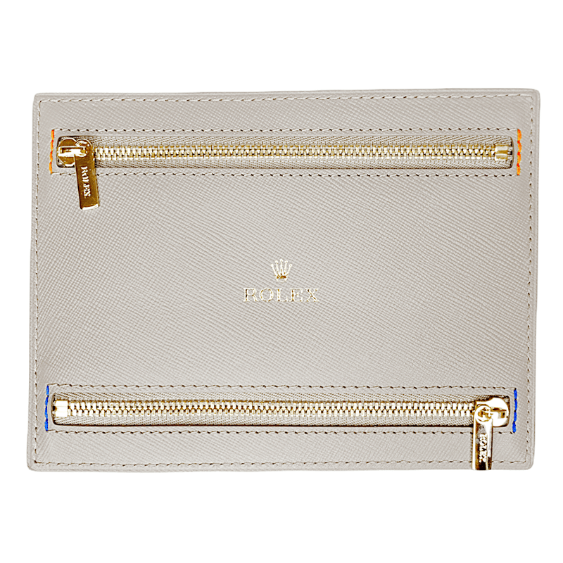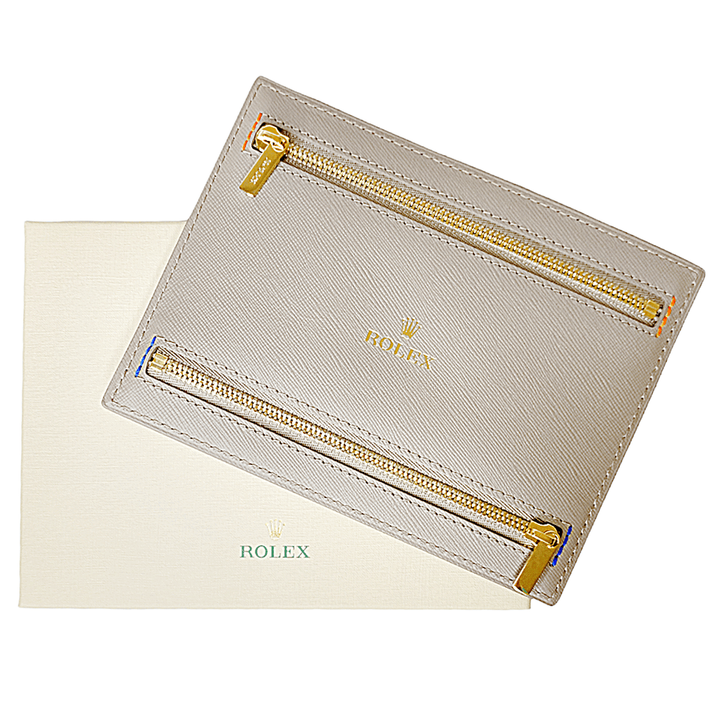 Zum Verkauf steht eine Pochette der Schweizer Marke Rolex. Diese Sammlerstücke sind selten zu finden.