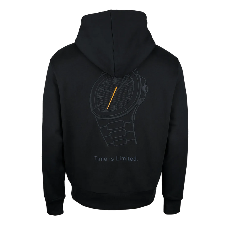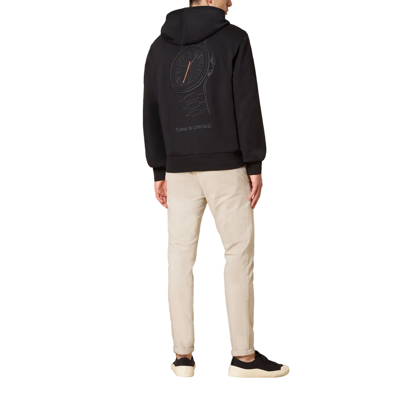 Dieser exklusive Hoodie beeindruckt durch seine einzigartige Uhren-Stickerei. Stilvoll und markant zeigt sich die großflächige, tonige Stickerei, die durch den charakteristischen orangefarbenen Sekundenzeiger besonders hervorsticht. Aus schwerer, zugleich weicher Baumwolle gefertigt, bietet er ein unvergleichliches Trageerlebnis. Der lockere Schnitt verbindet luxuriösen Komfort mit modernem Stil auf vollendete Weise.